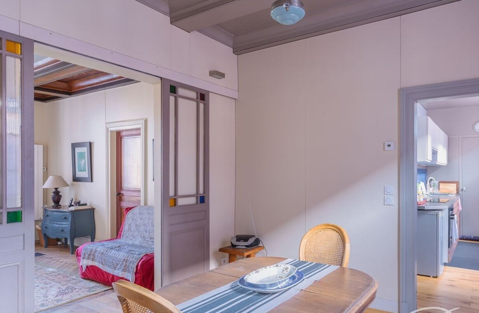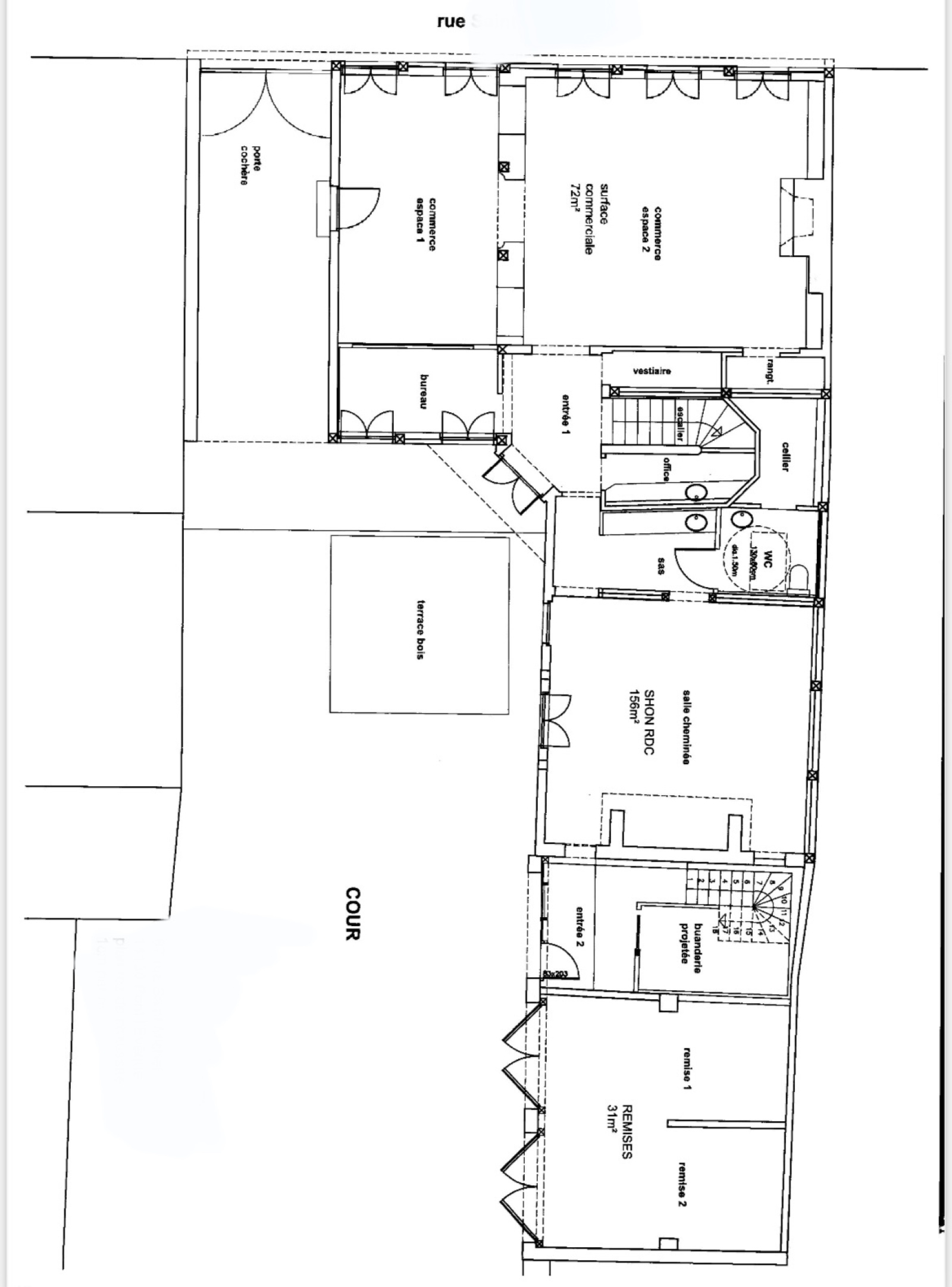 Le rez-de-chaussée donnant sur rue bénéficie d’une commercialité toujours en vigueur. Anciennement salon de thé, cet espace est actuellement un espace d'exposition d'art.
