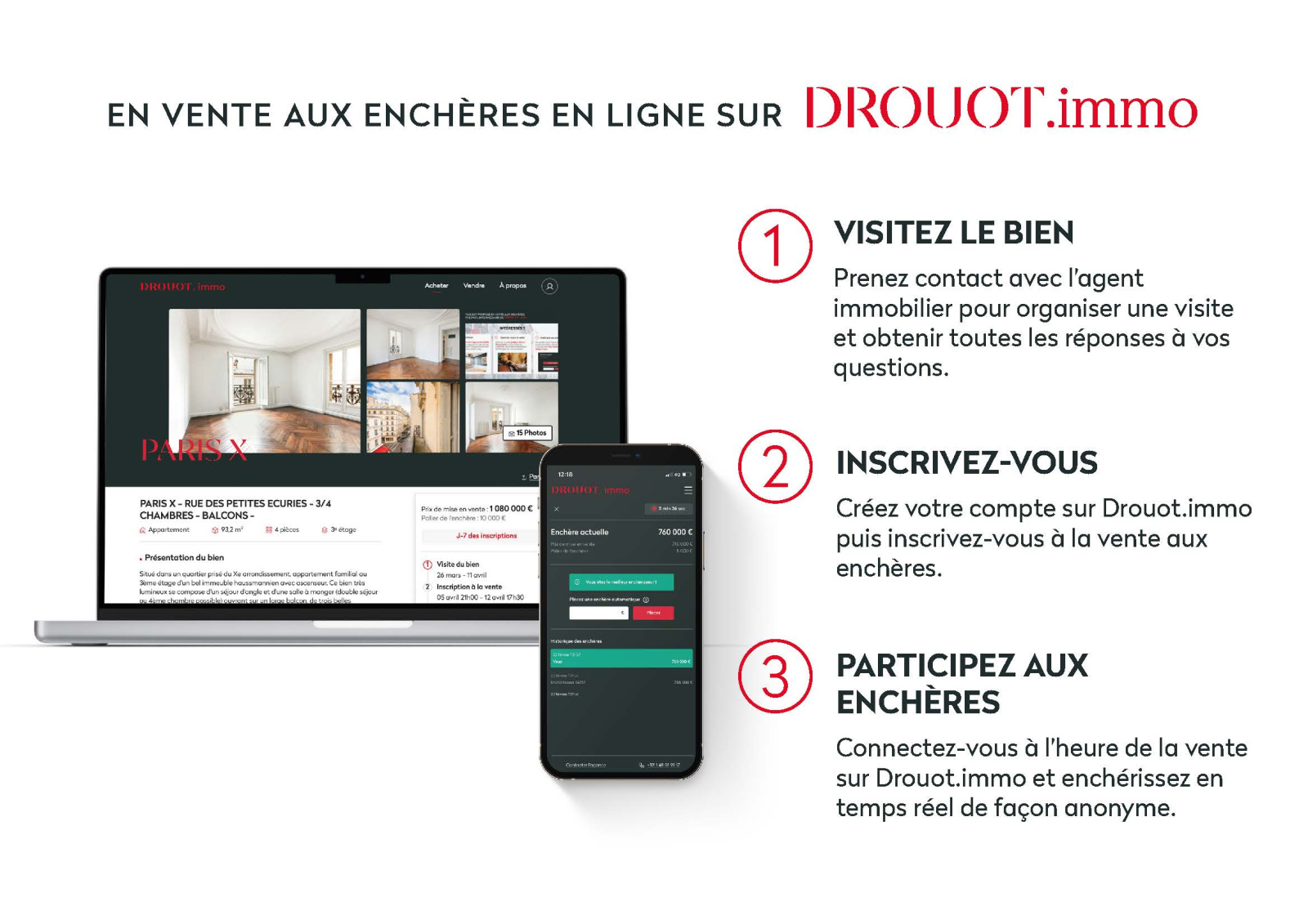 Ce bien vous est proposé en vente aux enchères interactive par l'intermédiaire de Drouot.immo. La participation à la vente interactive est soumise à agrément préalable.