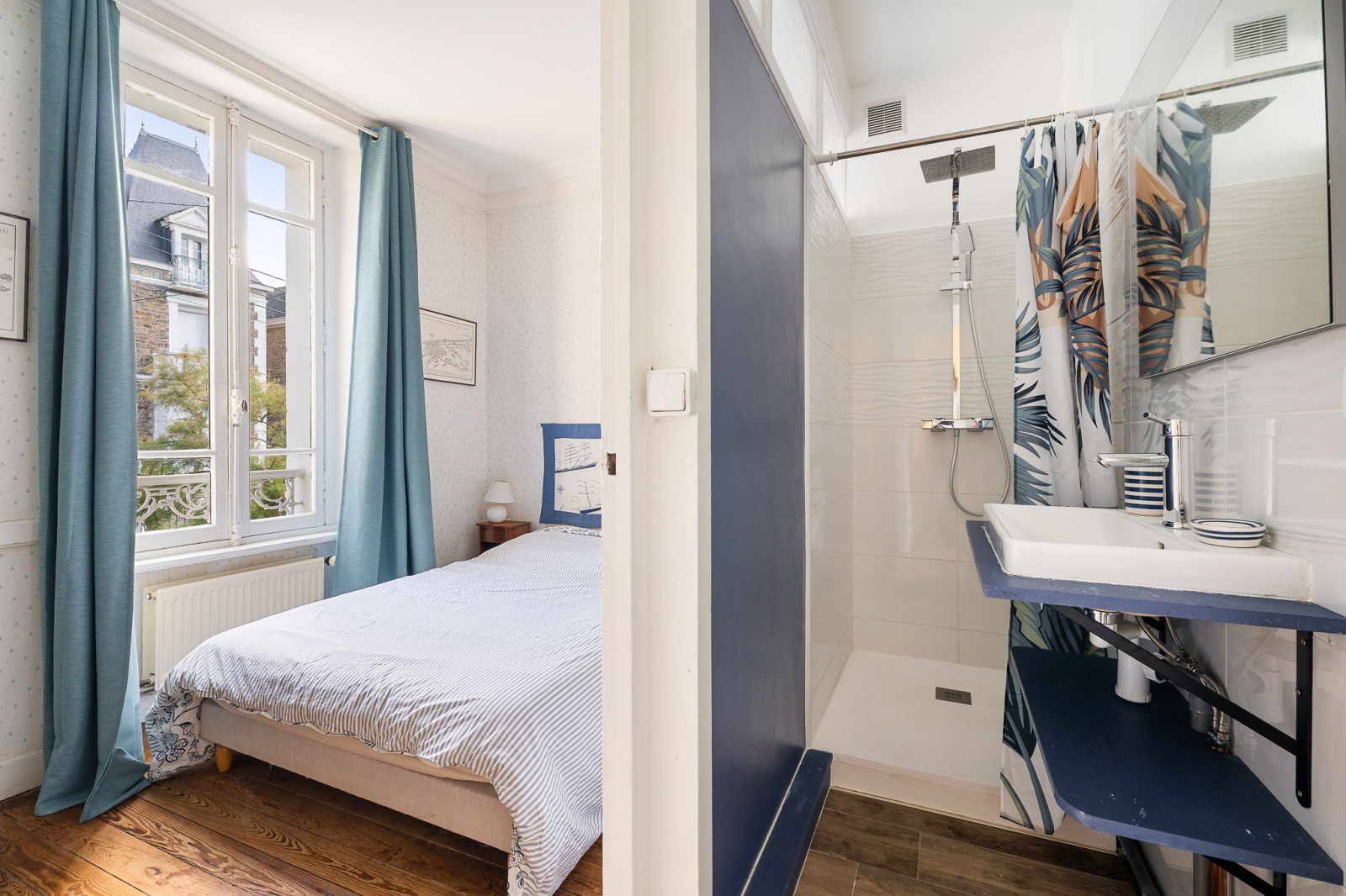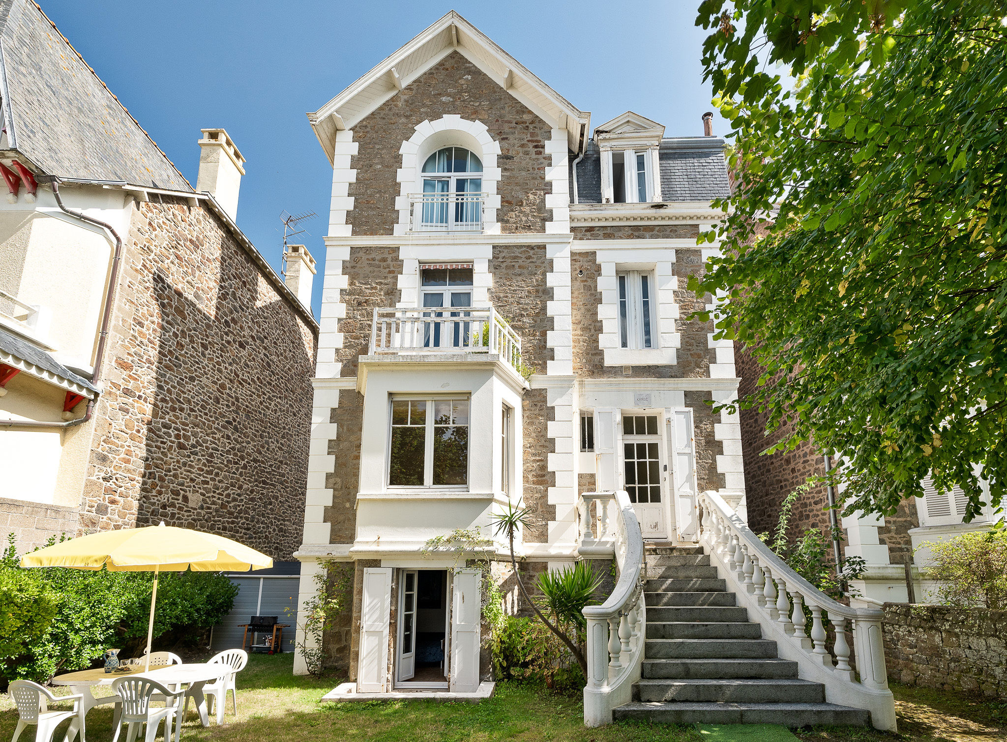 Au cœur de Saint Malo, dans un quartier résidentiel de Paramé, à quelques pas de la plage et du Grand Hôtel des thermes marins, élégante villa balnéaire Belle Epoque ayant conservé ses ornements d’origine : cheminées, balcons, bow-window, parquets et boiseries.