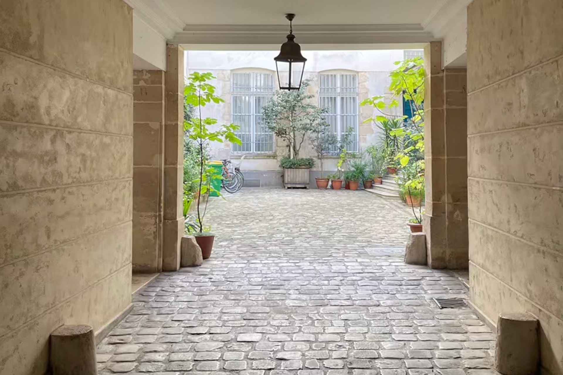 Idéalement situé au cœur du quartier Montorgueil, rue Saint-Sauveur, à quelques pas du métro Sentier, appartement au troisième étage d’un ancien hôtel particulier du XVIIIe siècle avec gardien.