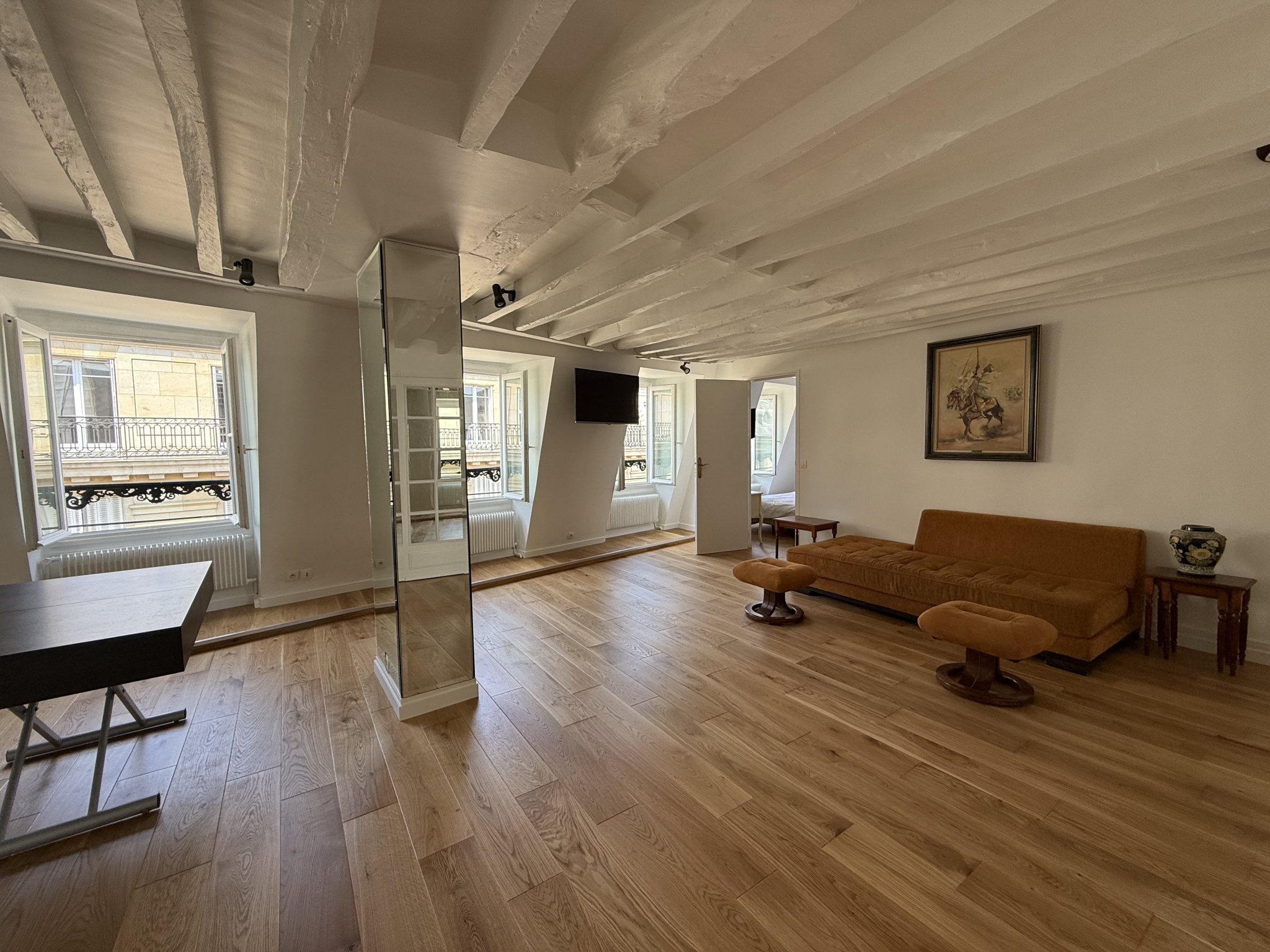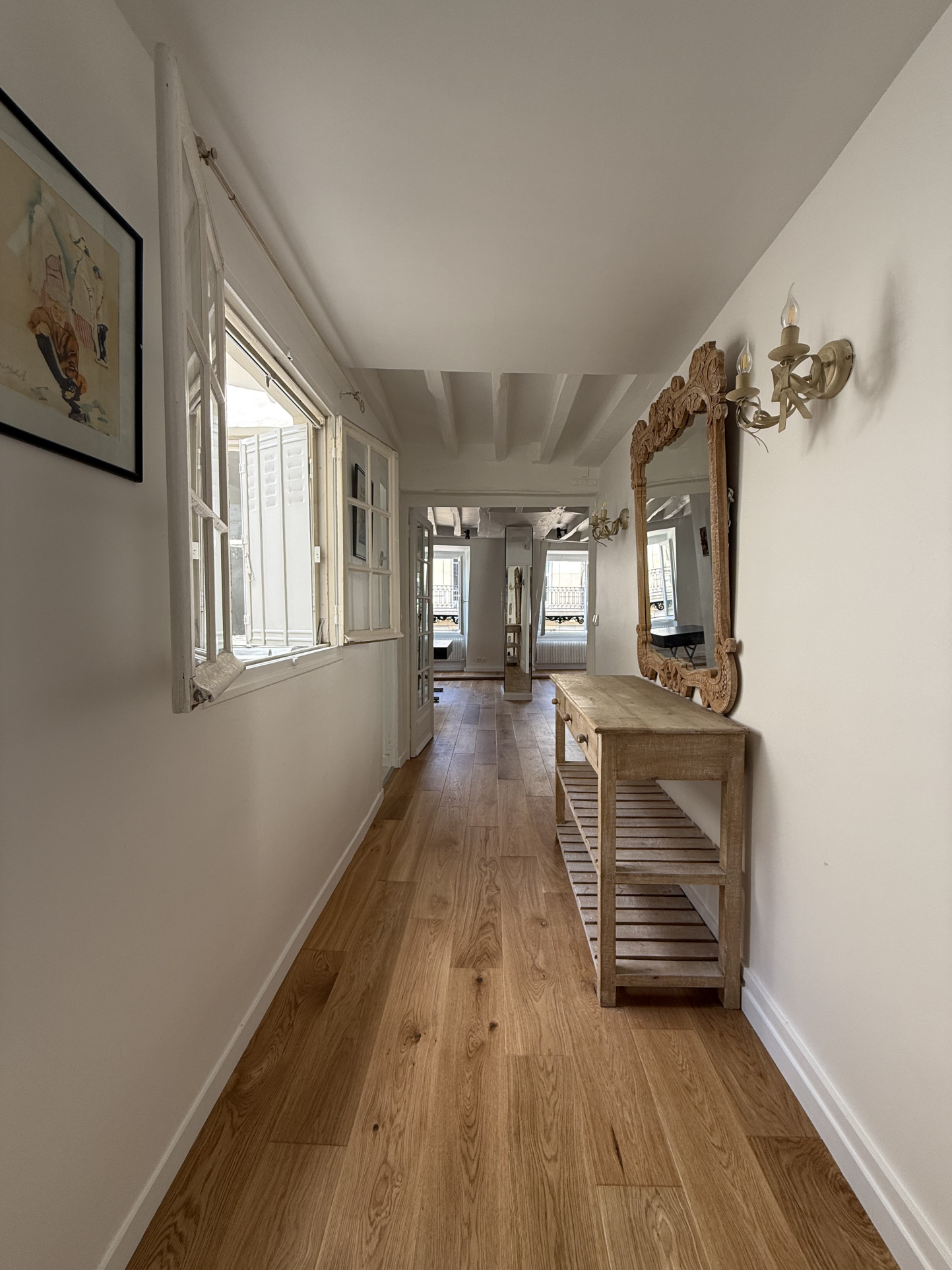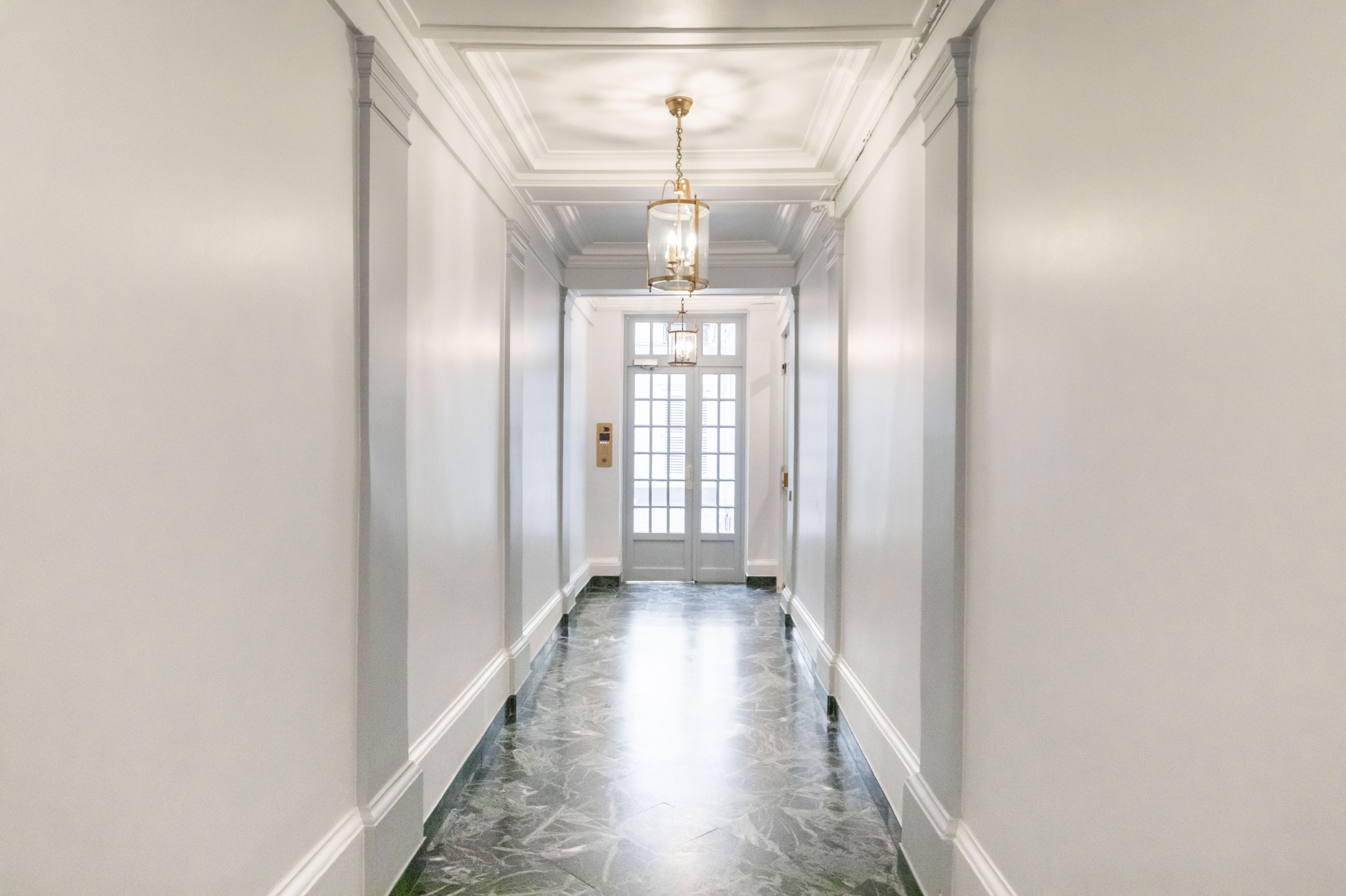Situé à quelques pas du métro Miromesnil, appartement traversant au 5ème étage d'un immeuble en pierre de taille de 1850 avec ascenseur.