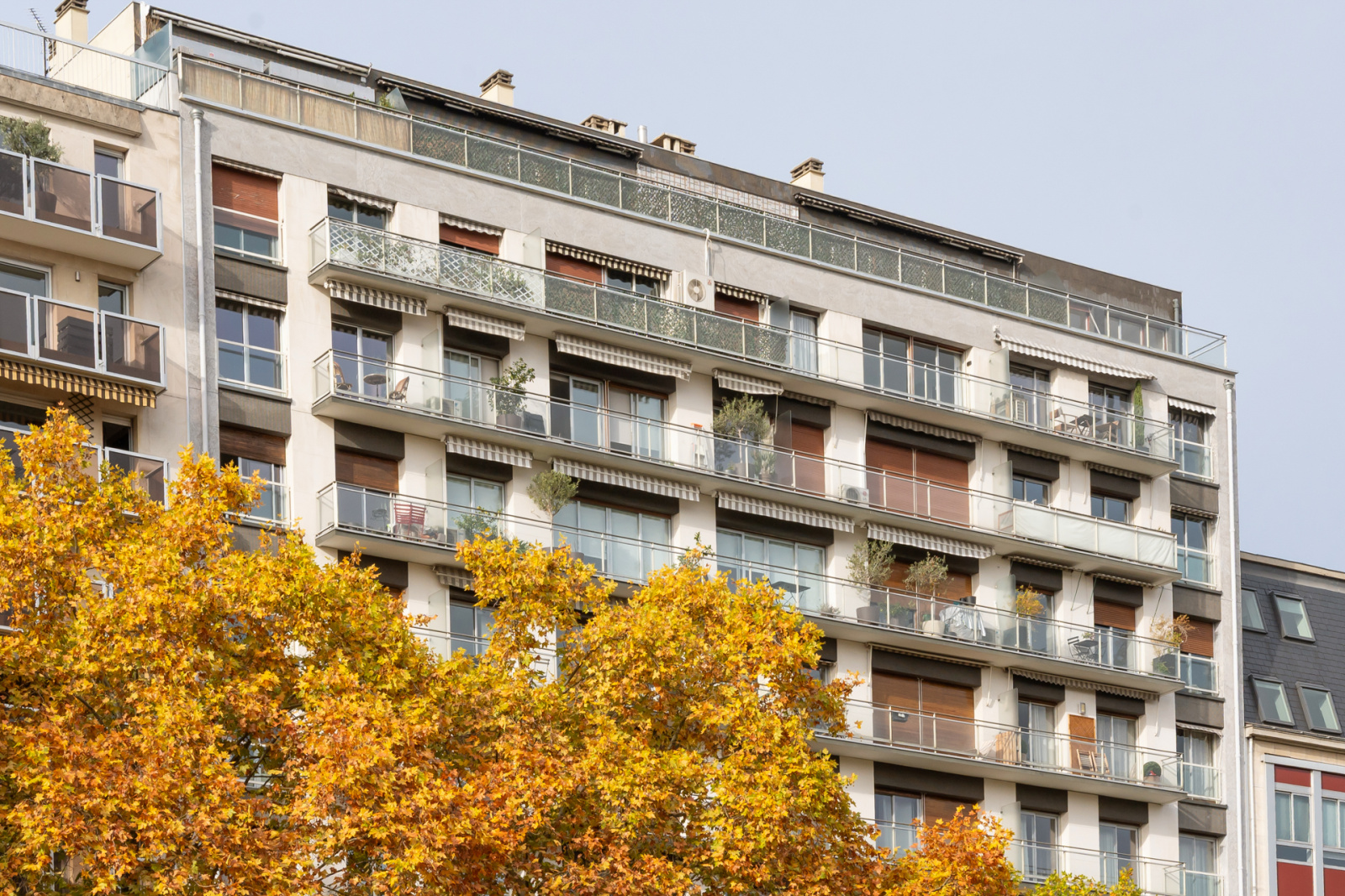 Surplombant la canopée des arbres du boulevard Pereire, appartement situé au dixième étage d'un élégant immeuble semi récent, avec ascenseur et gardienne.