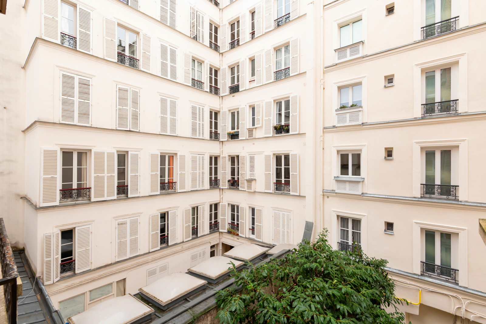 Situé au coeur du 6ème arrondissement, rue Bonaparte, appartement au deuxième étage sur cour arborée d’un bel immeuble en pierre de taille avec ascenseur.