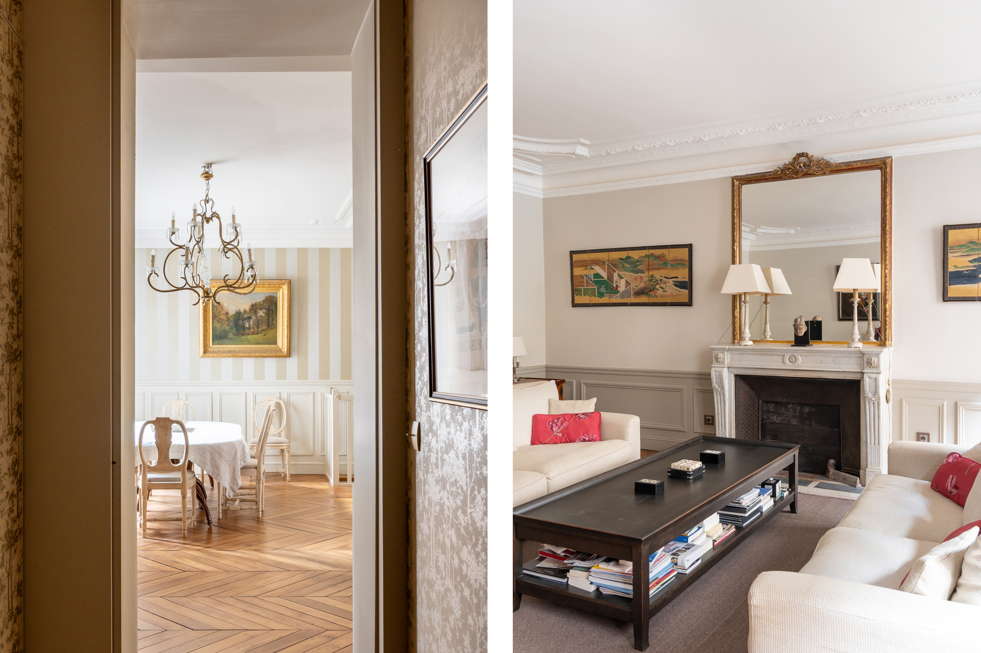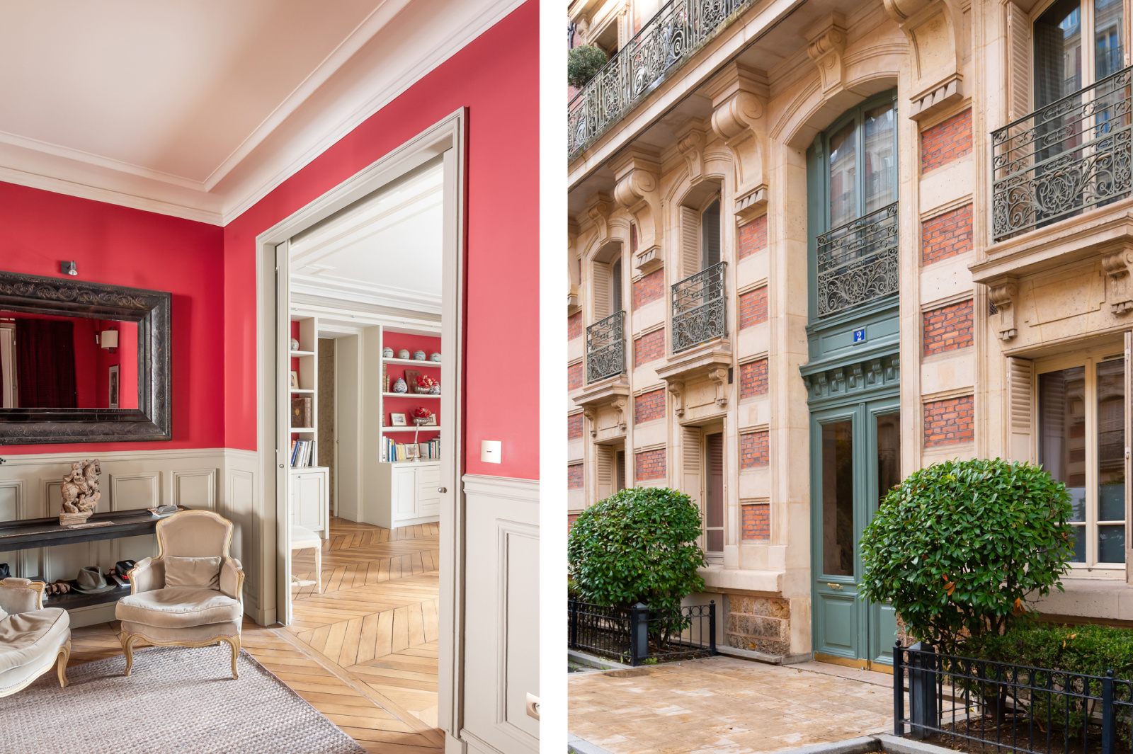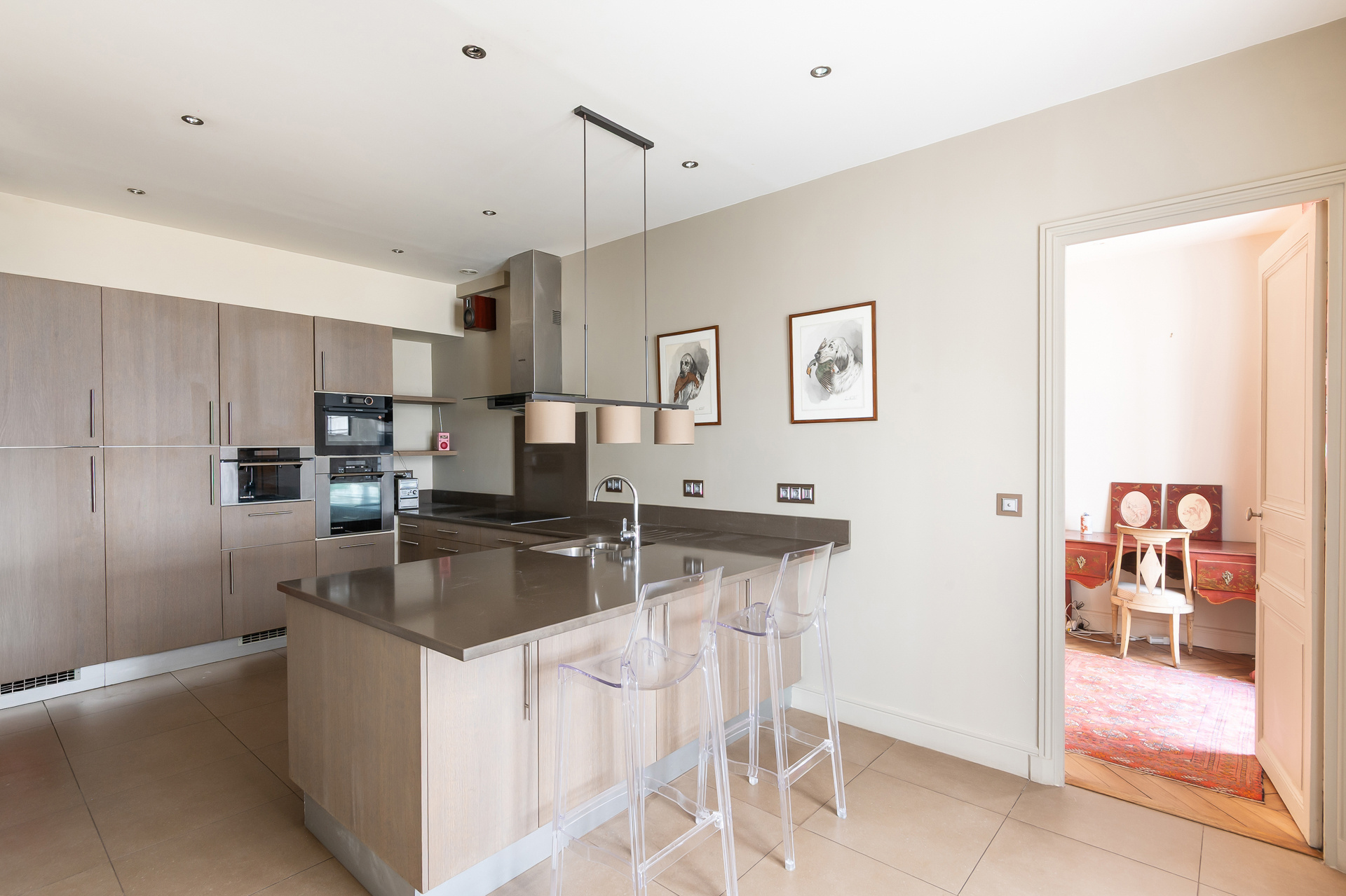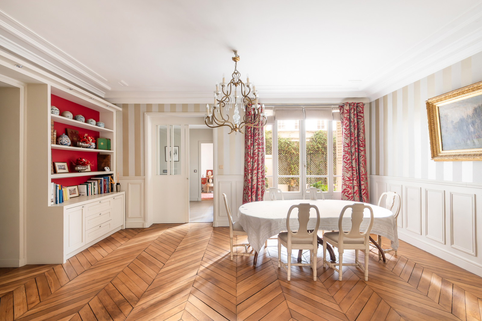 Cet appartement d’exception de 180 m² offre un vaste espace de réception de 70 m² traversant sur une cour arborée. Les trois chambres, dont une suite parentale, ont leur propre salle d'eau, et pour l'une d'entre elle une entrée indépendante comme un studio.