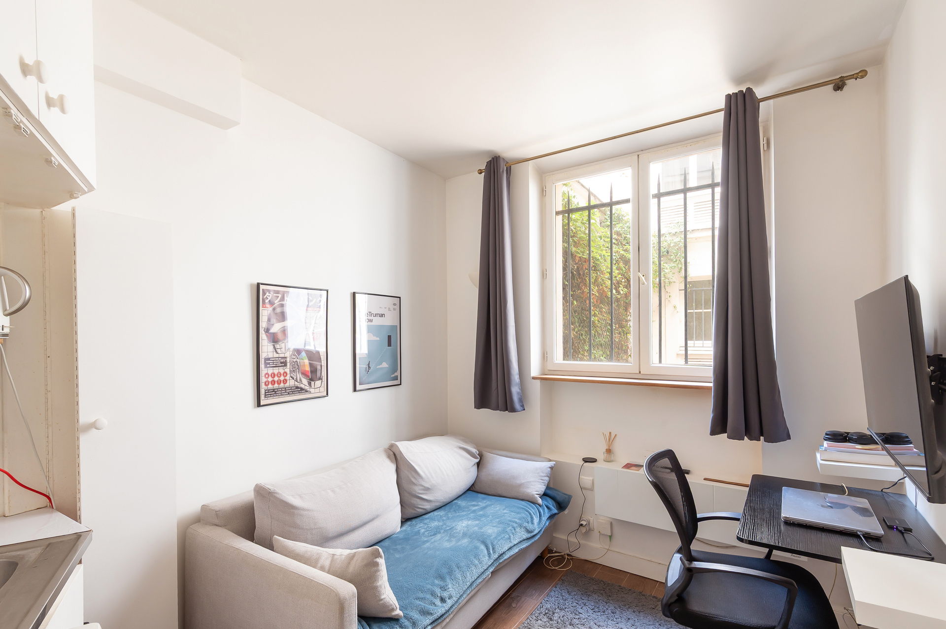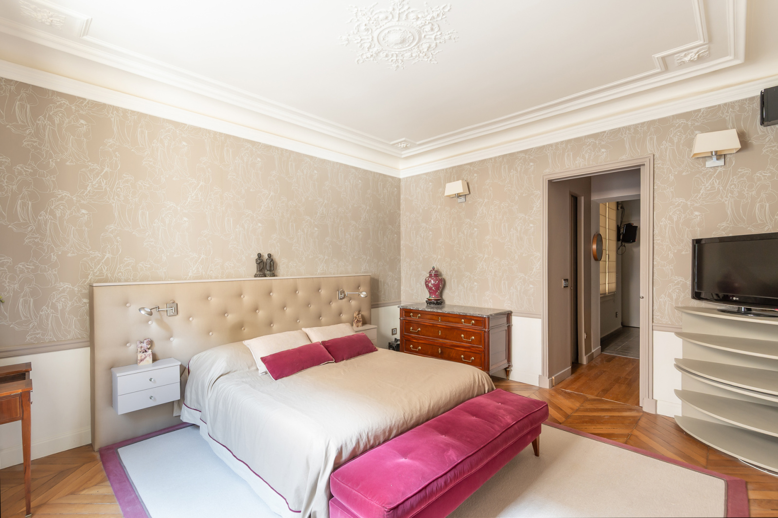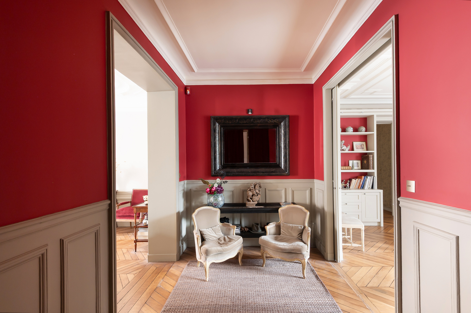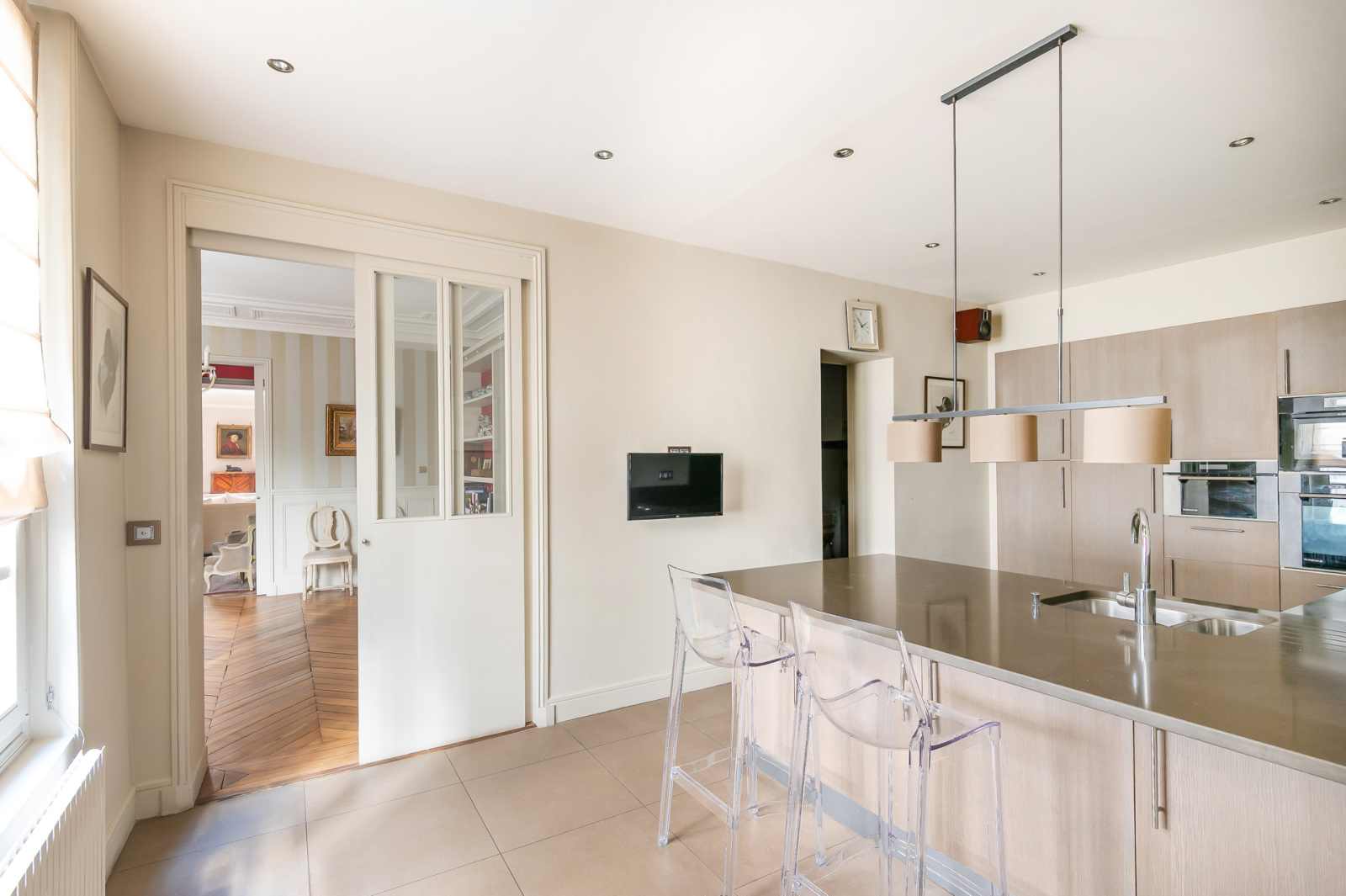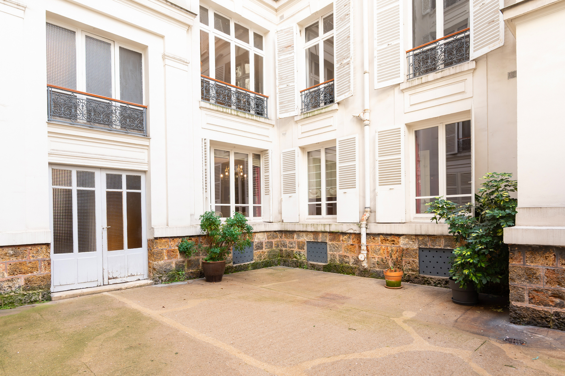 Cet appartement d’exception de 180 m² offre un vaste espace de réception de 70 m² traversant sur une cour arborée. Les trois chambres, dont une suite parentale, ont leur propre salle d'eau, et pour l'une d'entre elle une entrée indépendante comme un studio.