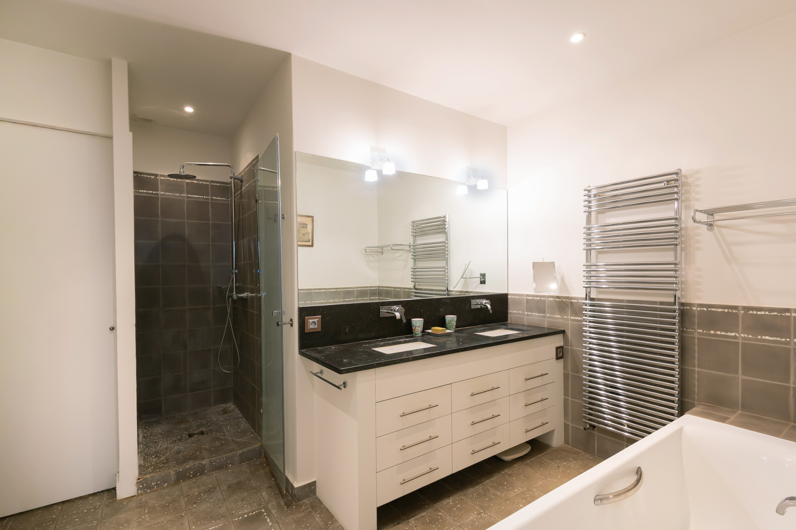 L’appartement est également doté d’un sous-sol aménagé, avec salon de télévision et cave à vin.