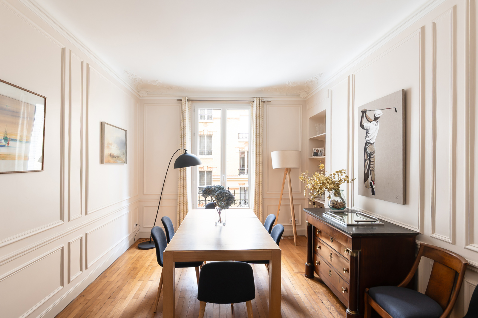 Situé dans une rue recherchée en plein centre de Neuilly, appartement au troisième étage d’un élégant immeuble des années 1900 en pierre de taille avec ascenseur et gardien.