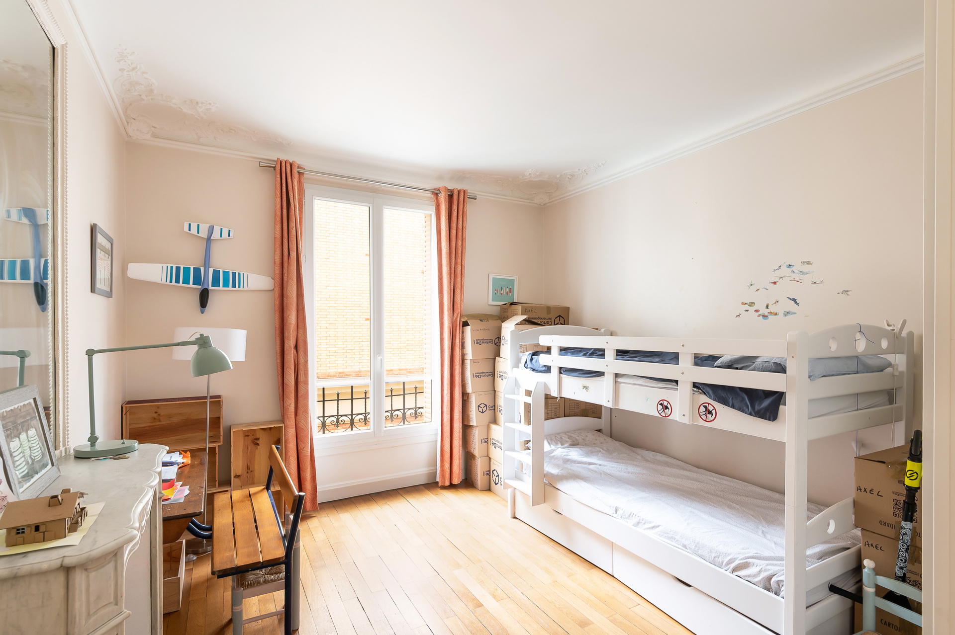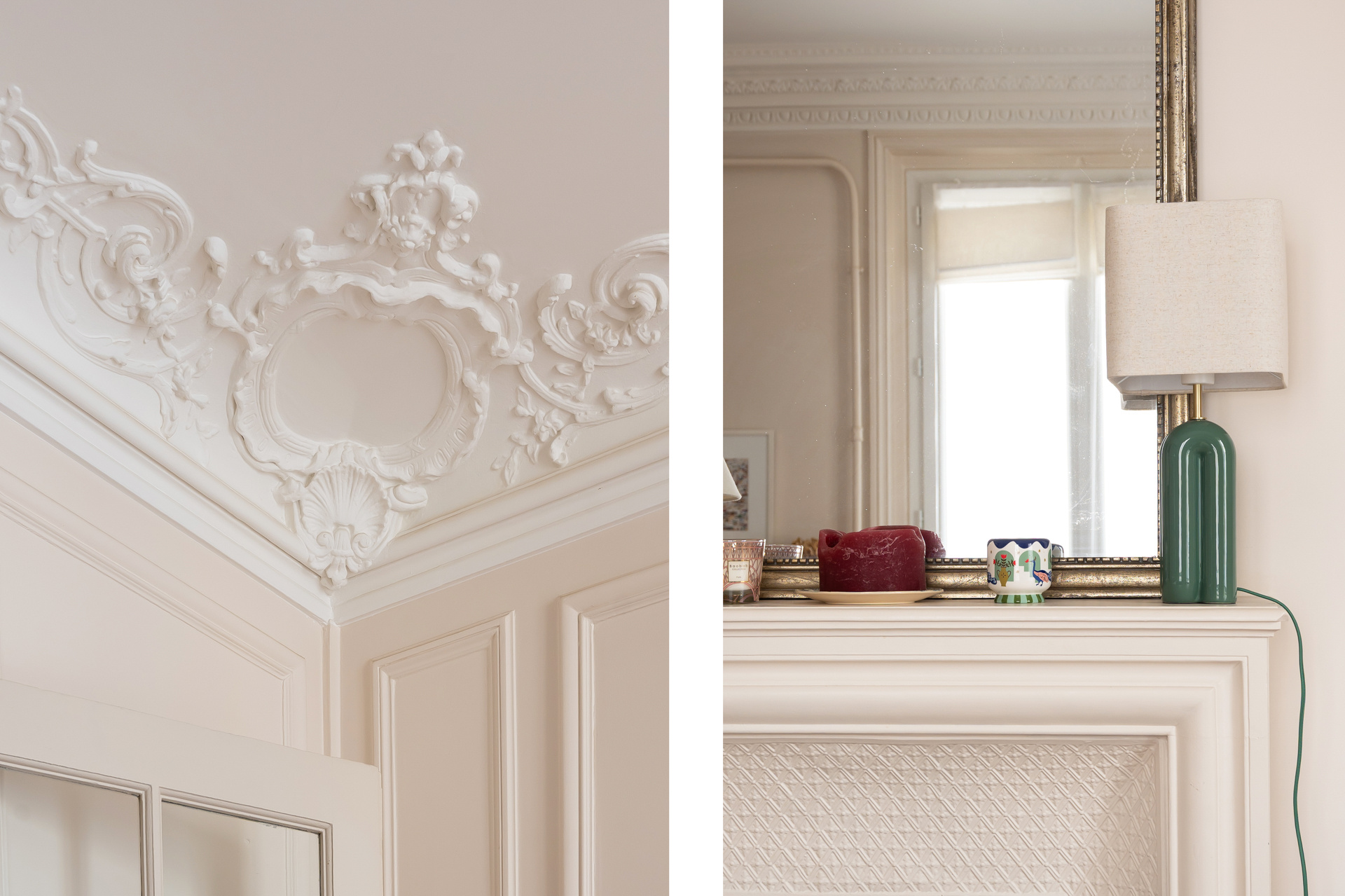 L’appartement a conservé ses ornements d’origine : parquets, cheminées et moulures.